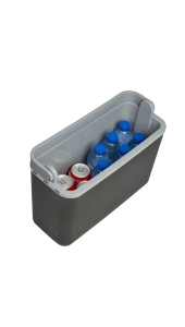 Deze koelbox is ideaal voor achter de autostoel, in de fietstas, mee naar het strand of naar het park. Met het handvat wordt het deksel geblokkeerd om de koelbox af te sluiten.