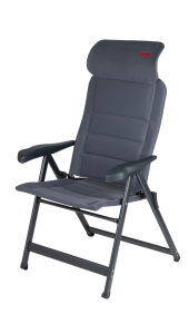 Deze Crespo campingstoel biedt maximaal comfort door de in 7 standen verstelbare rugleuning en een traploos verstelbare hoofdstuk.