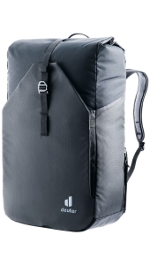 Eenvoudige drukknopen zorgen ervoor dat het achterpaneel omhoog of omlaag kan worden vastgezet, waarbij ofwel het BagFix bevestigingssysteem (voor bevestiging aan een bagagedrager) of het deuter Contact rugsysteem met ergonomische, ventilerende schouderbanden gebruikt kan worden.