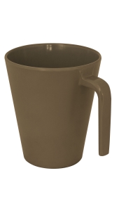 De drinkbekers kunnen door de open greep gestapeld worden zodat deze weinig ruimte innemen.