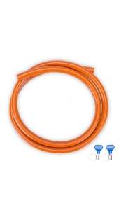 Dit is de Gimeg pvc propaan gasslang van 1,5 meter. Deze slang wordt geleverd met 2 slangklemmen,