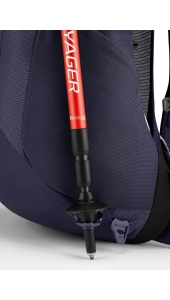Naast TipGripper-wandelstokbevestigingen en een borstriem met fluitje, zijn er compressieriemen aan de zijkant en bovenkant om je uitrusting stabiel en onder controle te houden.