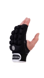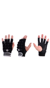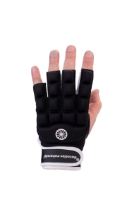 The Indian Maharadja half foam glove zorgt voor bescherming van de hand en de knokkels. Uitstekende pasvorm door de lycra met vulling van kwaliteitsschuim. Ergonomische vorm biedt optimale bewegingsvrijheid voor hand en vingers. De palm heeft een all-weather grip met siliconenstructuur voor grip bij stickhandling. De open duim en halve vingers geven meer contact met de hockeystick en vergroten grip en controle. Elastische band met verstelbare klittenband zorgt voor comfortabele pasvorm en sluiting. Geschikt voor elk niveau speler en verkrijgbaar in een linkshandige variant.