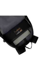 Groot hoofdvak met interne organisatievakken, een hydratatiepoort en een sleuf voor een laptop van 15”