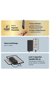 Deze Go2 Powerbank met 15W FastCharge en een capaciteit van 20.000mAh heeft een uitstekende prijs-kwaliteit verhouding. Deze Powerbank is geschikt voor de huidige mobiele apparaten en ook voor de modellen van de toekomst. Dit komt vooral door het gebruik van de nieuwste technologieën. Goedkopere powerbanks verliezen na verloop van tijd power of laden niet meer zo snel op. Met de kwalitatief uitstekende Xtorm Go2 Powerbank krijg je gegarandeerd jarenlang #MoreEnergy!