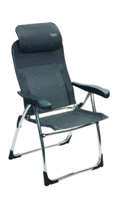 Deze standenstoel is de meest platte kampeerstoel, hij is zeer plat opvouwbaar tot een dikte van slecht's 5 cm. De sotel biedt maximaal comfort door de in 7 standen verstelbare rugleuning en een traploos verstelbare hoofdsteun (ruglengte: 65-83 cm). De stoel is voorzien van een U-frame met stabilisatoren en extra dikke buizen voor extra stevigheid en stabiliteit. Ideaal voor de vouwwagen, buscamper of voor andere kampeerders.